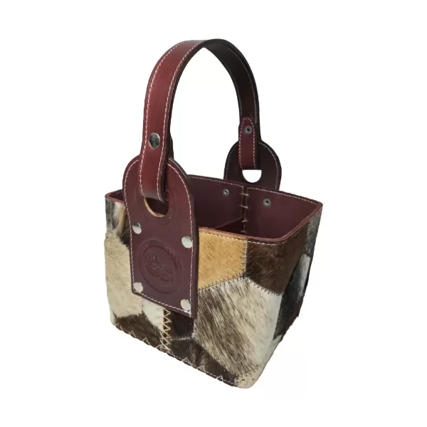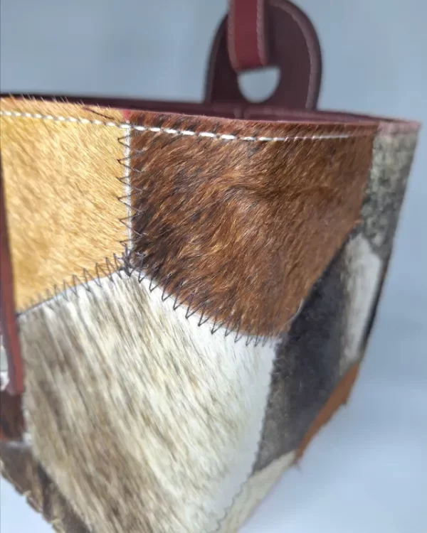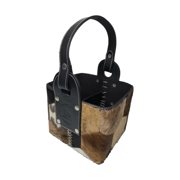 La canasta matera cuadrada 4x 4 está fabricada en 100% cuero vacuno premium y pelo vacuno natural